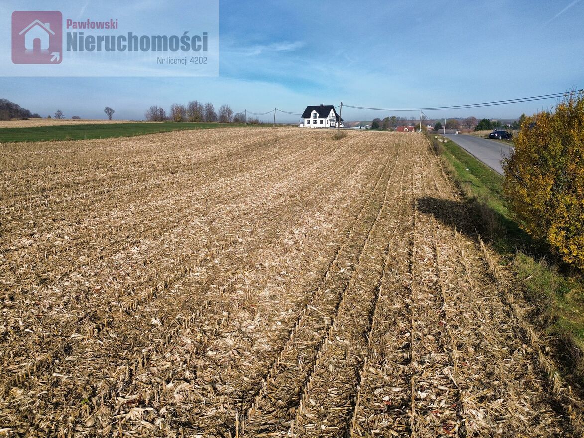Działka położona na płaskim otwartym terenie, obecnie użytkowana rolniczo.